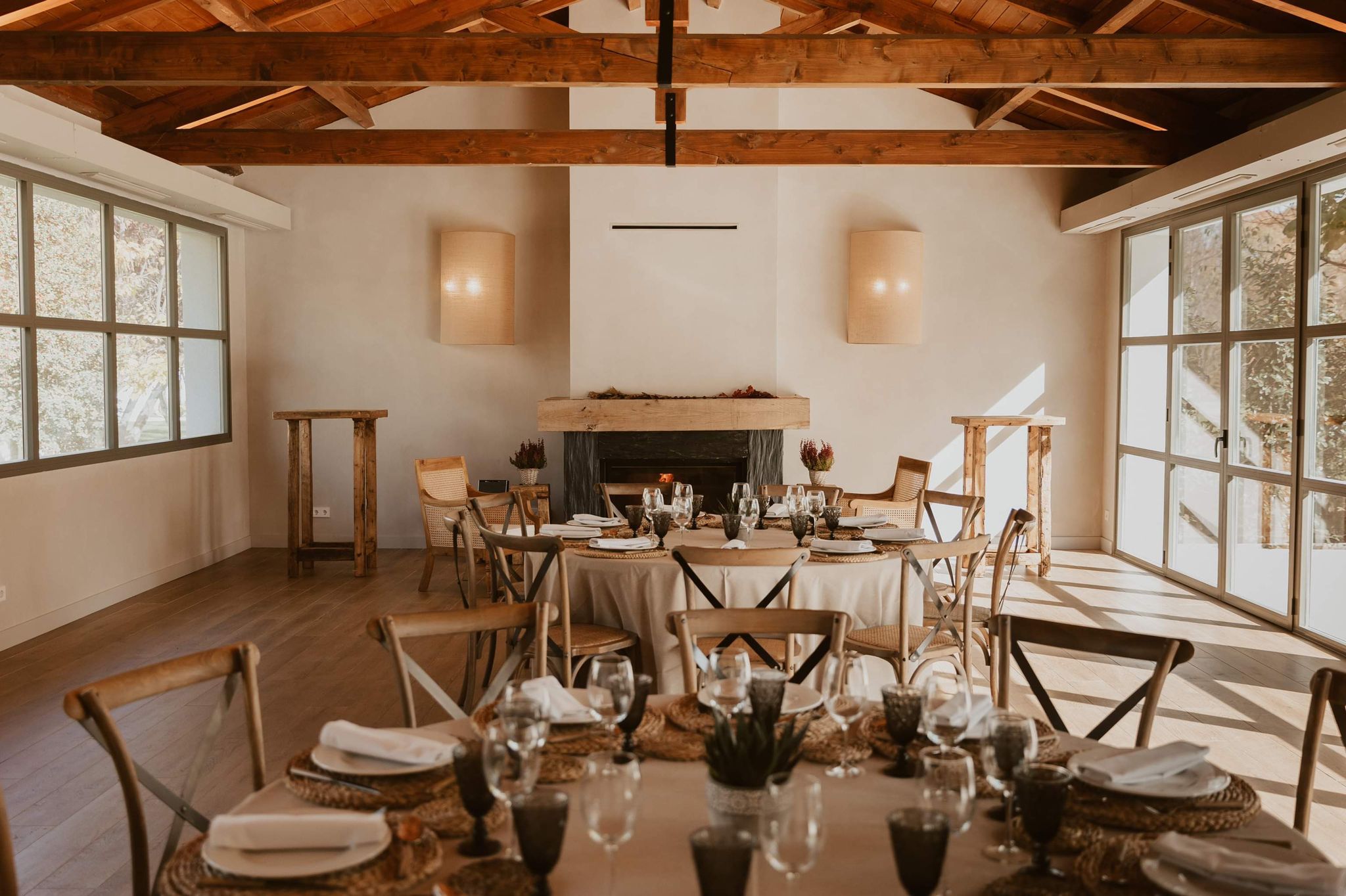Esta zona independiente funciona como pista de baile en bodas y es ideal para cenas de Navidad de empresa. Este encantador espacio, siempre conectado con el jardín, ofrece una atmósfera inigualable para eventos especiales.